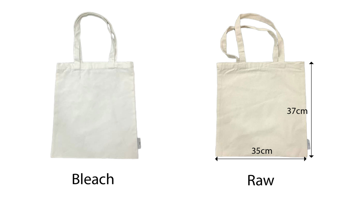 NOTE: If you select DTG printing, no white ink is printed on this product. If your design includes white, please select the Bleach colour tote bag instead of Raw.